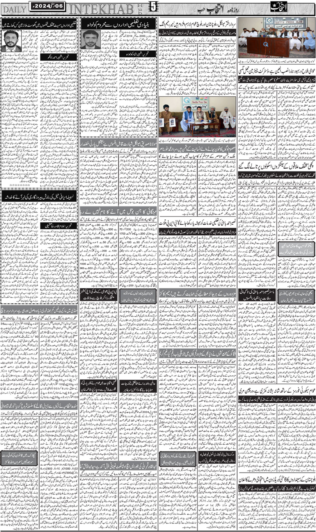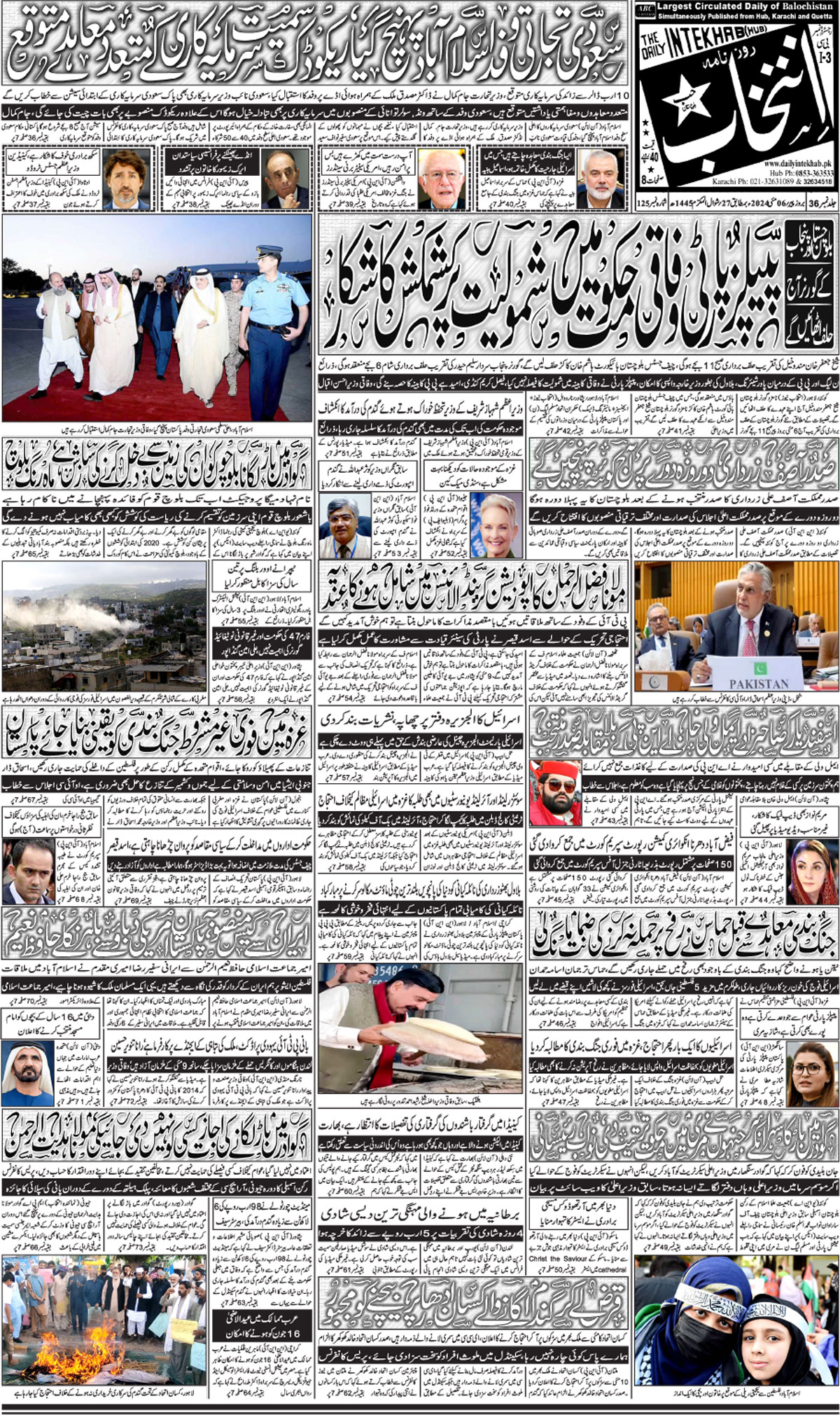 دشت سے مزدوروں کے اغواءکو ایک ہفتہ گزر جانے کے باوجود انتظامیہ کی جانب سے کوئی پیش رفت سامنے نہیں آئی،لواحقین طالبان کا پورے افغانستان پر کنٹرول نہیں، پہلے دن اندازہ ہوگیا کہ مذاکرات کا اختیار کابل حکومت کے پاس نہیں، وزیر دفاع غزہ میں امن فوج کے طور پر 20 ہزار پاکستانی فوجی بھیجنے کی رپورٹ جھوٹی اور مکمل طور پر من گھڑت ہے، وزارت اطلاعات خاتون ٹیچر کے قتل میں ملوث مرکزی ملزم زخمی حالت میں گرفتار، ساتھی فرار حب ، مدینہ کالونی میں نامعلوم مسلح افراد کی فائرنگ سے نوجوان قتل کوہلو کے پہاڑی علاقوں میں جنگلات میں آگ بھڑ ک اٹھی، آگ بجھانے کا کام شروع کردیا ،پی ڈی ایم اے