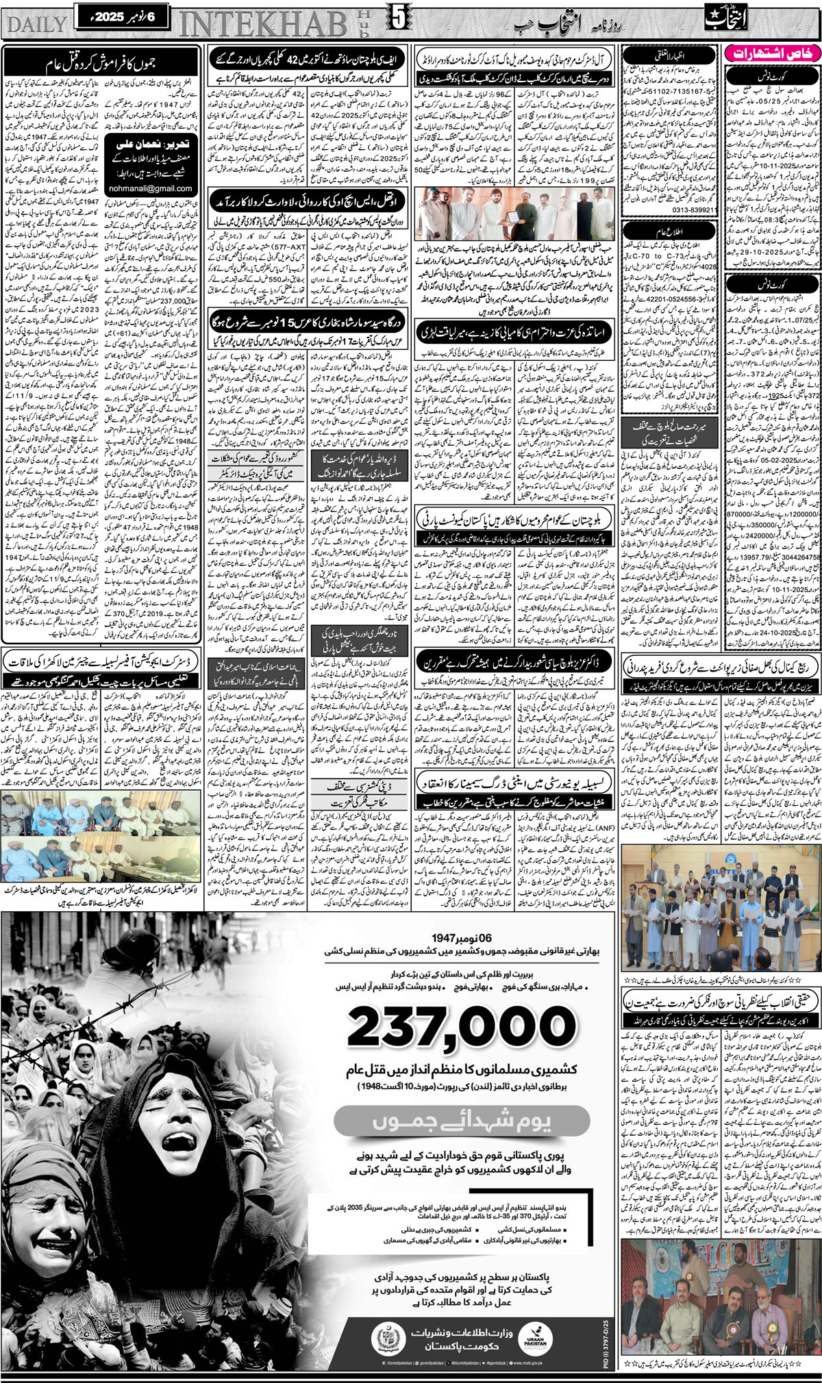 بلوچستان، حب کے 3 خواتین سمیت 64 افراد فورتھ شیڈول میں شامل، نوٹیفکیشن جاری