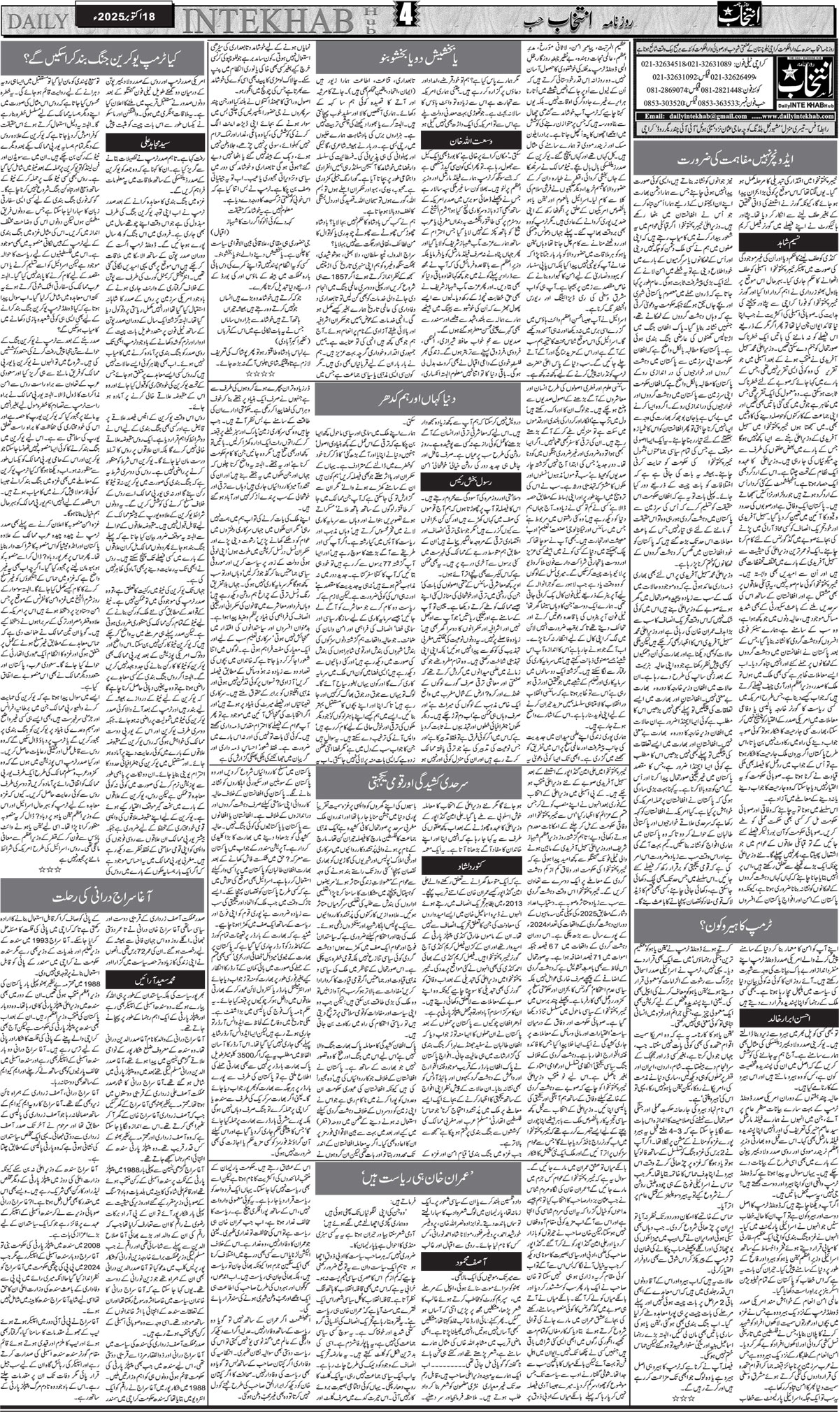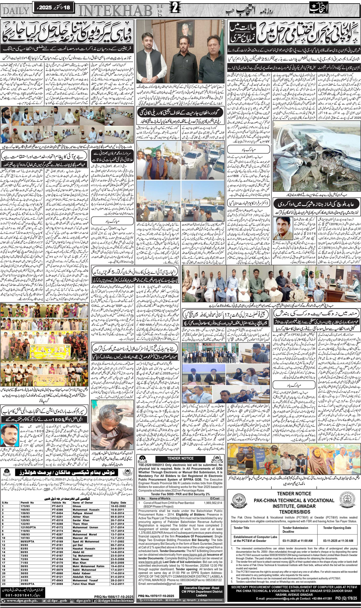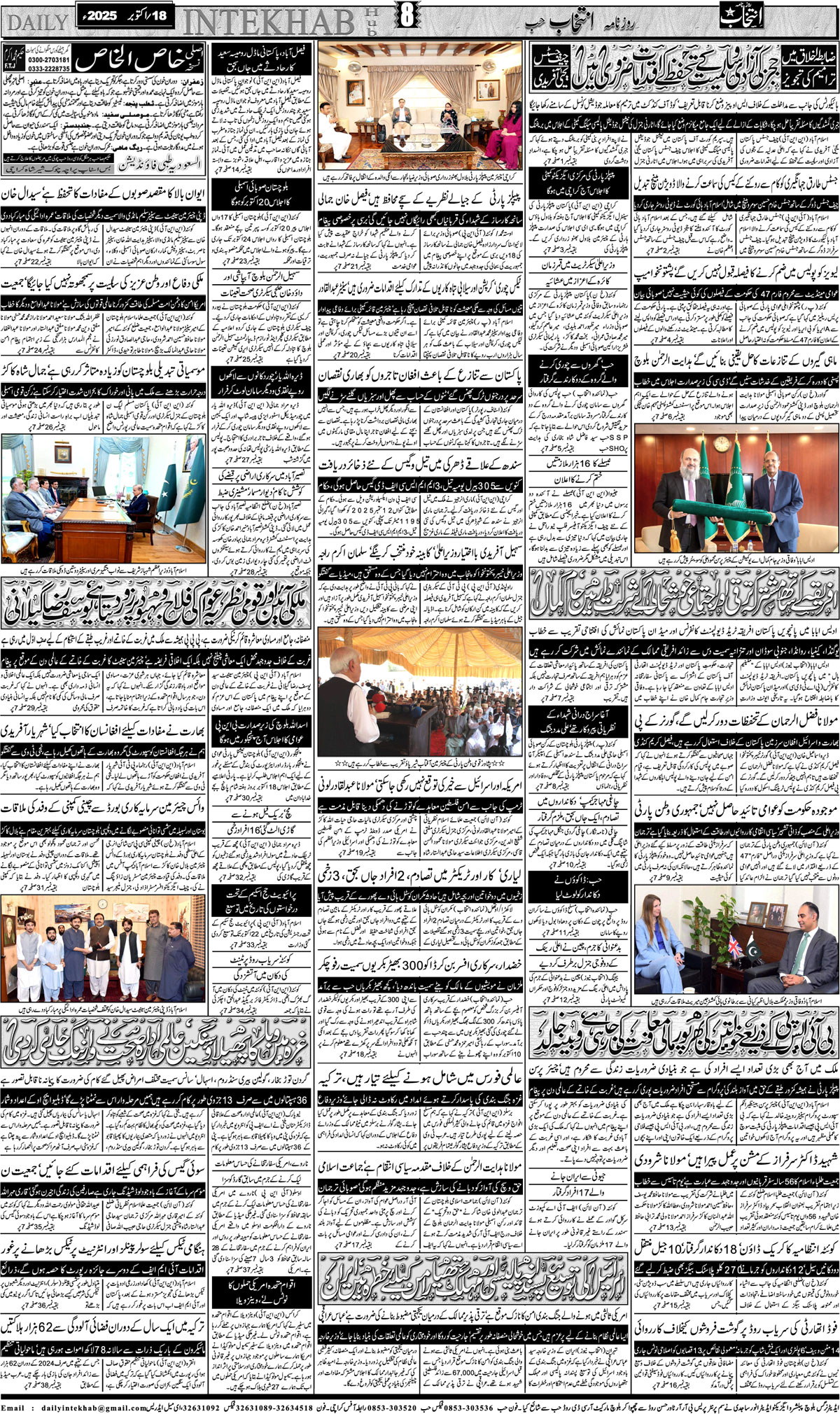 لیویز کو پولیس میں ضم کرنے کا فیصلہ جے یو آئی جوتے کی نوک پر رکھتی ہے، حافظ حمد اللہ سر کریک سے جیوانی تک اپنی بحری حدود کے ہر انچ کا دفاع کرنا جانتے ہیں، نیول چیف نوید اشرف موجودہ حکومت نے غیر سنجیدہ طرزِ حکمرانی سے صوبے کو انتظامی انتشار اور سیاسی تذبذب کے دلدل میں دھکیل دیا، مولانا واسع پیپلز پارٹی کا آزادکشمیر میں اپنی حکومت بنانے کا فیصلہ، صدر زرداری کا عدم اعتماد لانے کی منظوری تعلیم اور تباہی، سعید ابراہیم کا فکری چیلنج عوامی احساسات اور بہتر امن و امان کو برقرار رکھنے کے لیے لیویز فورس کو برقرار رکھا جائے، نیشنل پارٹی