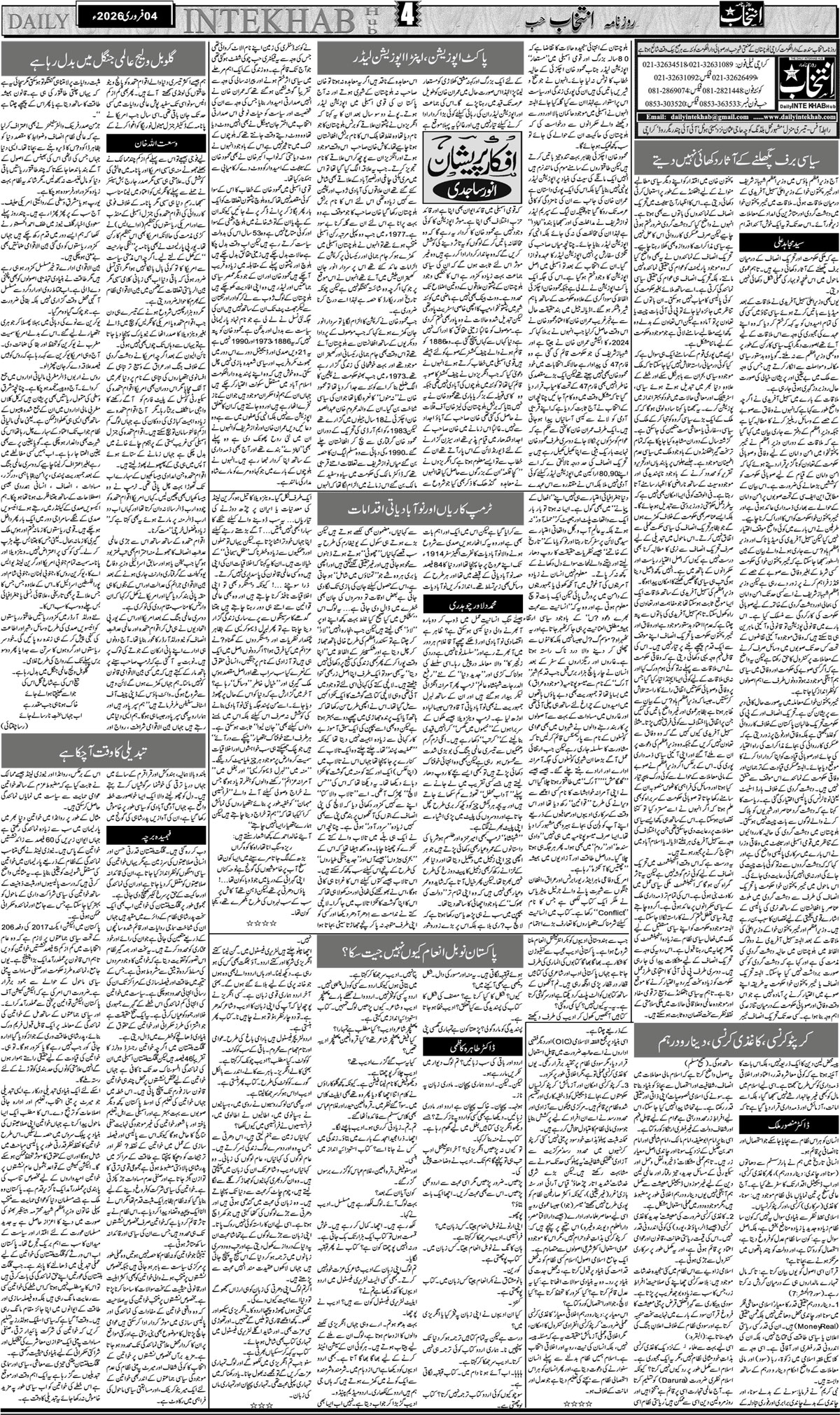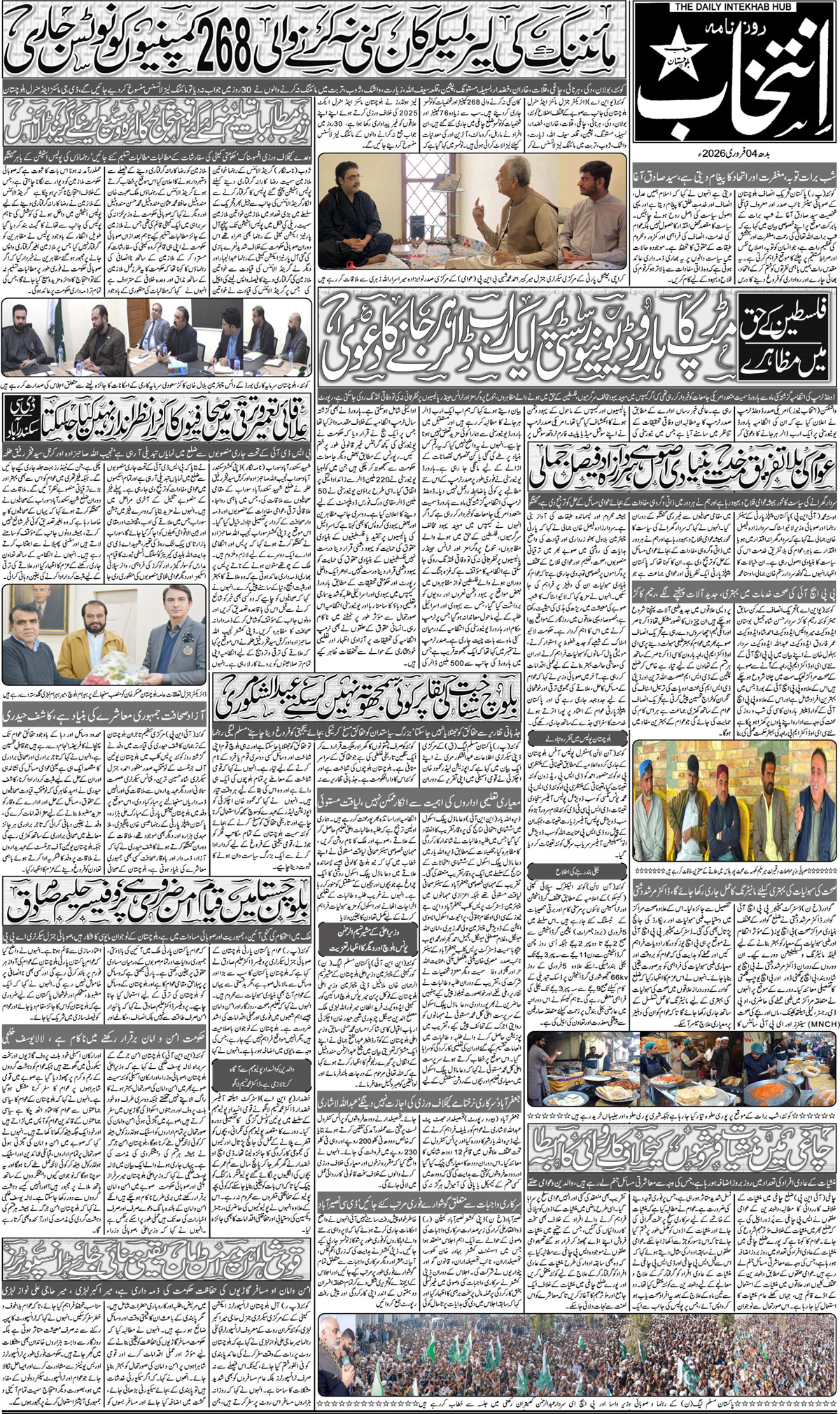 سینئر امریکی سفارتکار کی مولانا فضل الرحمن سے ملاقات، علاقائی امن سمیت امریکا ایران مذاکرات پر تبادلہ خیال کوئٹہ، قمبرانی روڈ پر فائرنگ سے ایک شخص جاں بحق کوئٹہ میں کام کے دوران کرنٹ لگنے سے مزدور جاں بحق، نوشکی میں مسلح افرا کی فائرنگ سے خاتون زخمی خلیجی ملک کو قرض کی واپسی، سعودی ولی عہد کی پاکستان کو 3 ارب ڈالر کی مالی ماونت فراہم کرنے کی یقین دہانی جامعات کو محض بھرتیوں کی فیکٹری نہیں علم، تحقیق اور جدت کے مراکز میں تبدیل کیا جائے، طلبہ کیلئے ڈیجیٹل سہولیات میں بہتری لائیں گے، وزیراعلیٰ بلوچستان الیکشن کمشنر بلوچستان نے لوکل کونسلز ڈسٹرکٹ کوئٹہ کی نئی حلقہ بندیوں کی ابتدائی فہرست جاری کردی