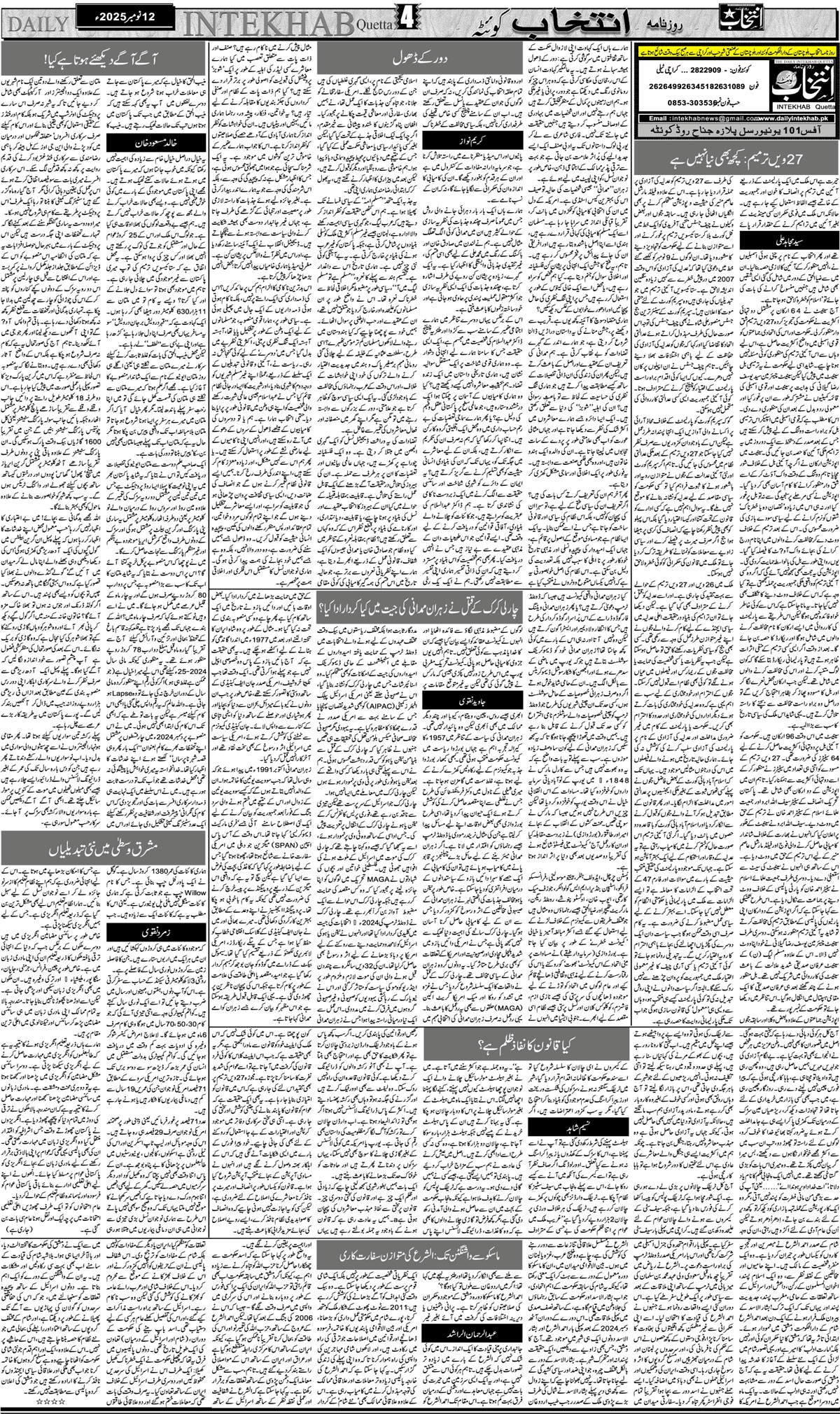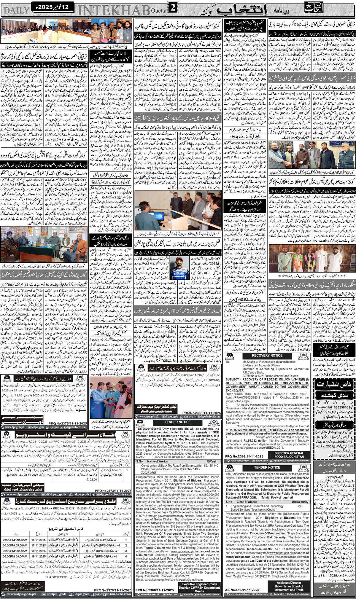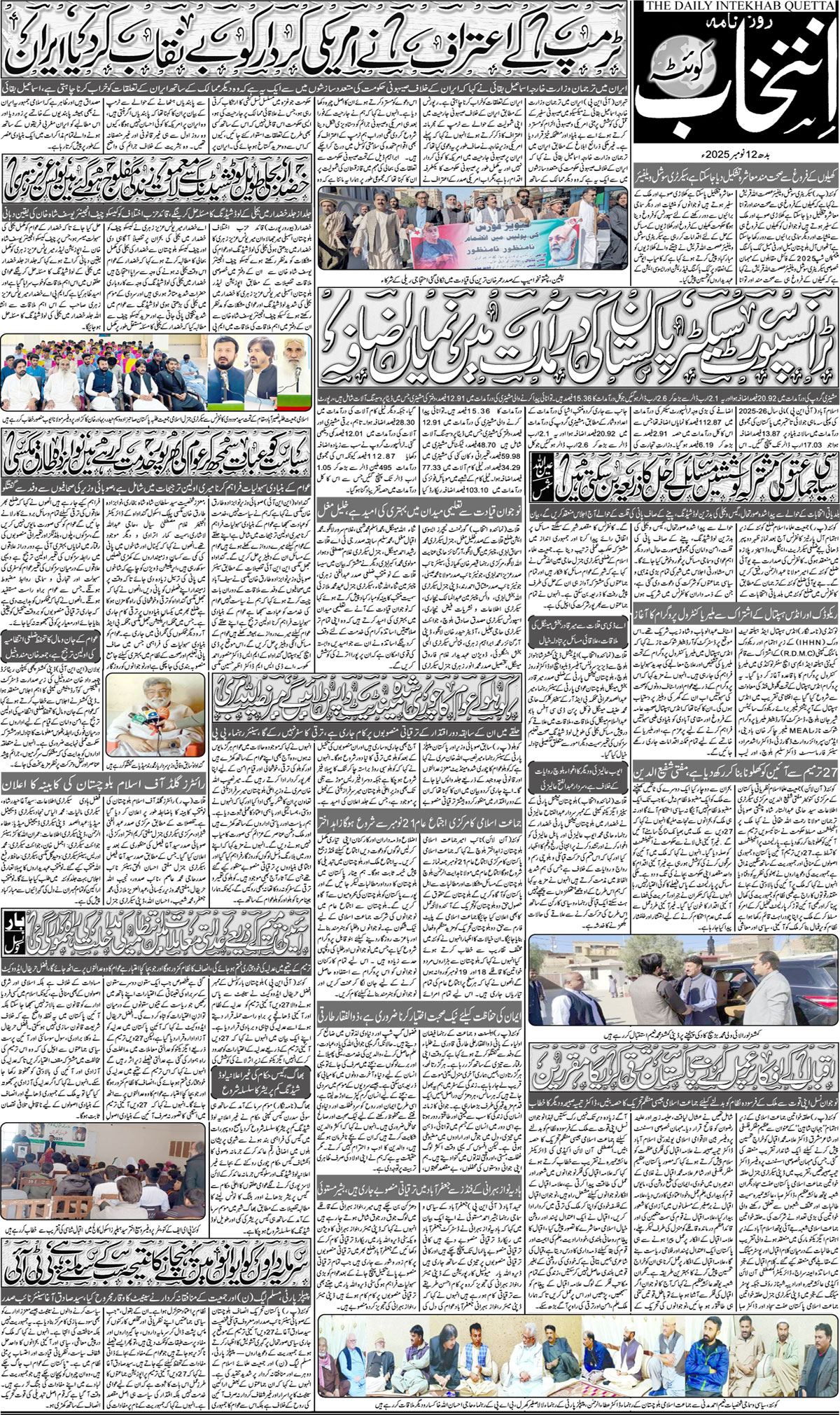 بلوچستان میں بارشیں 42 فیصد کم، کوئٹہ سمیت کئی اضلاع میں خشک سالی کے خطرات میں اضافے کا امکان طاقتور قوتوں نے بلوچستان کو بارود کے ڈھیر پر کھڑا کردیا، شاہراہیں، بارڈرز، انٹرنیٹ، تجارت بندکرکے کس کی خدمت ہورہی ہے، مولانا ہدایت الرحمن سندھ ثقافت ریلی، کراچی میں شرکا اور پولیس کے درمیان تصادم، مظاہرین کا پتھراﺅ، اہلکاروں کا لاٹھی چارج اور شیلنگ بیوٹمز کوئٹہ میں طلبا تنظیموں کی اسٹوڈنٹس آرگنائزیشنز کانفرنس، پالیسیوں کیخلاف بیوٹمز اسٹوڈنٹس جوائنٹ کمیٹی بنانے کا فیصلہ اداروں کیخلاف انتشار پھیلانے والے سینیٹرز کی رکنیت طویل مدت کیلئے معطل ہوسکتی ہے، قائم مقام چیئرمین سینیٹ ڈیرہ مراد جمالی پولیس کا اغوا کاروں کی پناہ گاہ پر چھاپہ، فائرنگ کے تبادلے کے بعد 2 مغویوں کو بازیاب کرالیا