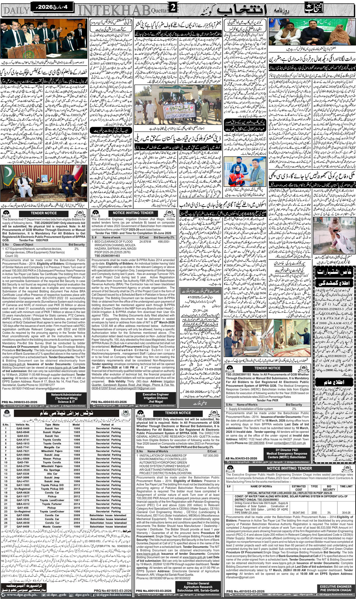 بھٹو کا قتل ایک سازش تھی پی پی وہ واحد جماعت جو ملک کو بحرانوں سے نکال سکتی ہے، پیپلز پارٹی بلوچستان پٹرول کی پرانی قیمتیں بحال نہ ہوئیں تو کوئٹہ سے کشمیر تک مظاہرے و شٹر ڈاؤن ہڑتال ہوگی، کاشف حیدری بھٹو شہید نے ووٹ کی طاقت دیکر سیاست کو عوام تک منتقل کیا، محروم طبقات کے حقوق اور وقار کا تحفظ ان کی سیاست کا بنیادی ستون رہا، سرفراز بگٹی جنگ کا نتیجہ خیز اور دیر پا خاتمہ ہونا چاہیے، مذاکرات کیلئے اسلام آباد جانے سے کبھی انکار نہیں کیا، ایرانی وزیر خارجہ پیٹرولیم مصنوعات کی قیمتوں میں اضافہ، پنجگور سے کوئٹہ کیلئے کوئی مسافر بس نہیں چل سکی، عوام کو پریشانی کا سامنا مارکیٹس 8 بجے، ہوٹل اور شادی ہال 10 بجے بند ہوں گے، تیل کا کاروبار کرنیوالوں کو چیک پوسٹوں پر تنگ نہیں کیا جائیگا، سی ایم ہاﺅس میں بھرتیاں روک دیں، گاڑیاں نیلام کرکے الیکٹرک گاڑیاں خریدیں گے، وزیراعلیٰ بلوچستان