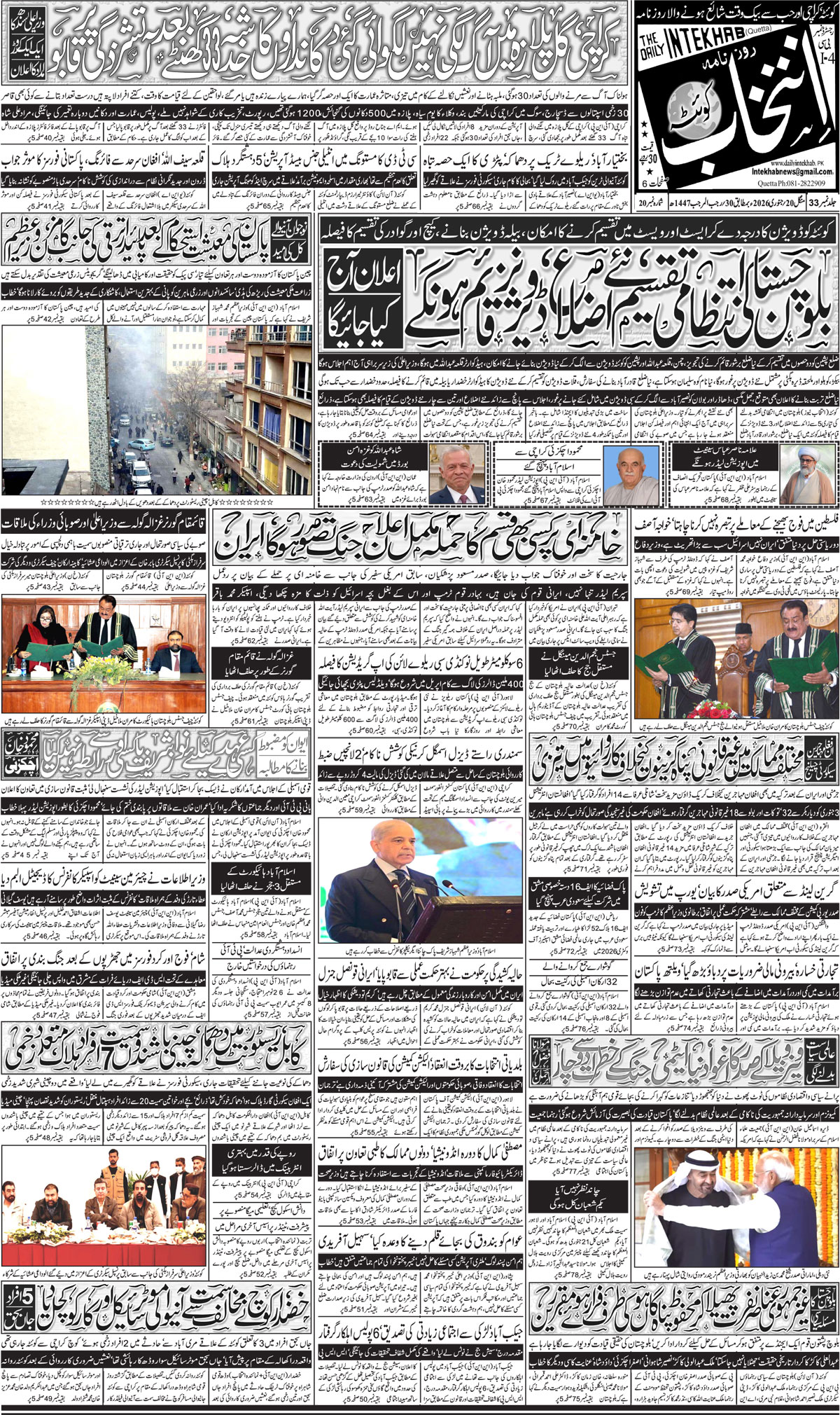 جامعہ گوادر آر سی ڈی کونسل کے ریکارڈ کو کمپیوٹرائزڈ کرنے کیلئے معاونت فراہم کرے گی، پرو وائس چانسلر پرنٹ میڈیا کے بجٹ میں کٹوتی مسترد، حکومت ڈیجیٹل میڈیا کیلئے الگ رقم مختص کرے، بلوچستان ڈیجیٹل پبلشرز فورم جنگ بندی کے بعد ایران کا آبنائے ہرمز 2 ہفتے کیلئے کھولنے کا اعلان، بحری جہاز گزرنا شروع یونین کونسلز نمائندگان کے مسائل حل کریں گے، کوئی ایسا وعدہ نہیں کیا جائے گا جو عملی طور پر پورا نہ ہوسکے، وزیراعلیٰ بلوچستان افغانستان اور پاکستان کشیدگی کا جامع حل تلاش کرنے پر متفق ہیں، چینی وزارت خارجہ خاران میں این جی او کی گاڑی پر فائرنگ، بلوچستان کانسٹیبلری کے دو اہلکار زخمی، پولیس ذرائع